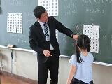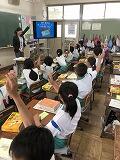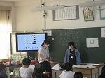 学校課題推進のため、そして教員一人一人の資質向上を目指して、全教員が一人一研究授業を行っています。今回は6年1組の青木美諭教諭が算数「分数のかけ算」の研究授業を行いました。小数で計算した場合と分数で計算した場合を比較し、分数で計算する良さを考えました。みんな目を輝かせて意欲的に取り組んでいました。