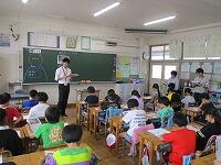降り続いた雨により水たまりがたくさんできていた校庭も、時間が経つにつれて水が引き、昼休みから5校時にかけては、友達と遊んだり、クラスのお楽しみ会に興じる子どもたちの歓声が響いていました。