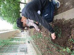 また、昨年も気になっていた桜の花がそっくり地面に落ちている現象が、今朝もあちらこちらで見られました。そして、その原因となっているかわいい野鳥の様子も捉えることができました。
