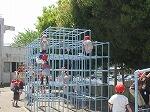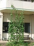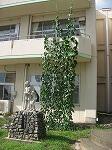 屋上の丸い高架水槽の撤去と校舎前の緑のカーテン(7月23日)