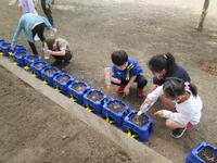 1年生が生活科の学習で育て、夏休み中も家で育てていた植木鉢が教室前にもどってました。アサガオはまだ花が開いていたり、種ができていたりするものもあります。その他の植物も花から種へ姿を変えようとしています。2学期はみんなで種を集める予定です。それ以外にも校舎のヘチマの緑のカーテンがさらにのび、3階まで届き黄色の花を咲かせ、大きな実をみのらせています。職員室前のとちの木もたくさんの実をみのらせています。落ちた実を6年生が拾ってきれいにしてくれています。少しずつ秋の気配が深まってきているところです。