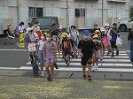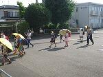 暑い日が続く中、感染症対策をとりつつ熱中症リスクを少しでも軽減できるよう「傘さし下校」を行っています。マスクをはずして、一定の距離を保ちながら傘をさして下校しています。