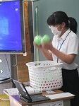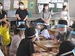 5年家庭科「ひと針に心をこめて」で,手ぬいの練習をしました。先生からの説明とビデオを見て,針の扱い方や玉結び・玉どめの練習します。COVID-19対策として,フェイスシールドをして行いました。