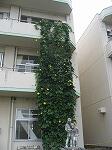おろされた高架水槽 丸い高架水槽のない屋上 3階にまで伸びようとしている緑のカーテン