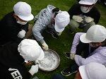 6月26日(日)早朝7時より西体育小屋の壁を「おやじの会」(代表 横田昌広様)の会員の皆様(OB含めて13名)に補修していただきました。剥がれ落ちそうになっていた壁もきれいにそして頑丈になり、児童及び職員の安全も確保できます。また、裏庭の中央にあいた穴も横田様に寄贈していただいた砂を入れて整地していただきました。併せてジャングルジムの下のコンクリートの上にも安全のために砂をひいていただきました。「おやじの会」の皆様、暑い中の作業、本当にありがとうございました。