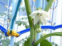 <学校の生き物たち紹介> 2年生が育てている野菜の苗で、ナスやピーマンが花を咲かせたり、実を実らせたりしています。
