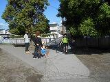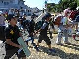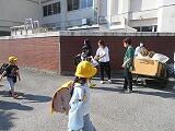 PTA会長の挨拶 資源ごみを持って登校 正門でのあいさつ