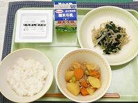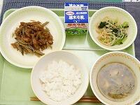 <今日の給食> ご飯・牛乳・焼き鳥風煮・昆布漬け・じゃが芋のみそ汁