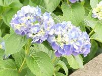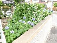 <学校の生き物たち紹介> 正門北側の植え込みで、色とりどりのアジサイが咲きそろいました。