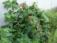 <学校の生き物たち紹介> 図書室南側の花壇で、オシロイバナが花を咲かせ始めました。