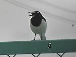 オナガの集団とセグロセキレイ、もうすぐ、北へ向かうツグミです。