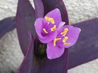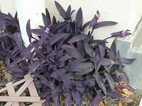 <学校の生き物たち紹介> 図書室南東側の壁際で、花を咲かせ始めたムラサキゴテン。