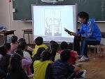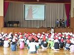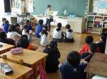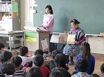 朝の時間を使って、お話ボランティア「おはなしたまてばこ」の方々による読み聞かせが行われました。