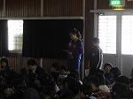 業間には、1~3年生を対象に、体育館で読書集会を行いました。