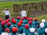 本日も、早朝から、あらい水と緑の会やJA、そして、育成会の方々のご協力をいただき、風雨で倒れてしまった稲を起こして刈り取りしやすくしていただいたり、刈り取り方をていねいに教えていただきながら稲刈りを体験させていただいたりすることができました。