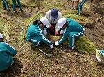 さらに、9時半からは、学校の南側の田んぼで、5月に植えた稲の刈り取りを行いました。