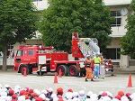 その後、はしご車による逃げ遅れた人の救出の様子や、高い建物からロープを使って素早く降りる実演などを見せていただきました。