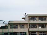 朝の校庭巡回中、校舎屋上のアンテナの上に、チョウゲンボウが止まっているのを発見しました。もう、すっかりおなじみの野鳥となりつつあります。