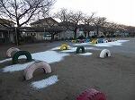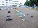 2つめは、北校庭に残されていたシーソーの土台部分とタイヤの撤去工事です。