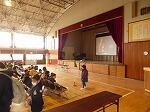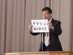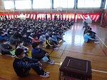 よい子になるための、「できるとよいこと5つ」の提示があり、できていることを一つ一つ手を挙げながら確認していきました。校長先生からは、最近あった善い行いを例に、「自分のためだけではなく、周りの人のためになることも考えて、それを実行できるようになろう。」と呼び掛けてくださいました。