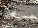 案の定、校庭巡回中にプールを覗くと、この冬初めて、水面の一部が凍っていました。