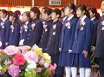 その後、学校に関するクイズに答えたりした後、花のアーチをくぐって退場していきました。