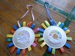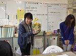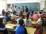 その後、在校生の協力で作製した首飾りのプレゼントを、4年生が手渡ししました。