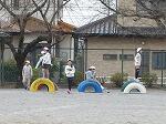 今朝は、校庭のタイヤや砂場の木枠が霜で白く見える冷え込んだ朝でした。