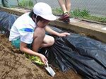 また、特別支援学級においては、農園でジャガイモなどを育てるために、土おこしや畝づくり、草を生やさないためのマルチはりを行いました。