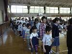 その後、校庭に集合し、保護者の方々にも付き添っていただきながら、方面別に下校していきました。