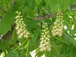校舎の南側に並ぶ トチノキ は、大きな葉を広げ、白い花をたくさん咲かせ始めました。