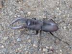 そして、振り返ると、夜中、タイマーで点灯している外壁等のそばに、とても大きくて立派な ノコギリクワガタが出迎えてくれていました。