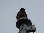 ④は、空高くでホバリングしながらさえずっていた ヒバリ(スズメ目ヒバリ科)、⑤は、青空の中をゆうゆうと飛んでいった 白いサギ(コウノトリ目サギ科 ダイ・チュウ・コの区別は付きませんでした。)、⑥は、校門前で、あたりの様子を伺っていた カワラヒワ(スズメ目アトリ科)です。