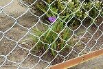 その陰に隠れて、ムラサキツユクサが、紫色の可憐な花をひっそりと咲かせています。