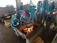 薪を割って火をおこし、材料をきり味付けをしました。みんなで協力しておいしい力うどんができました。