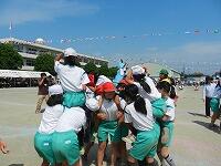 午後は、綱引き。勝利を目指して力いっぱい引っ張りました。結果は白組の勝ちでしたが、紅組もがんばりました。