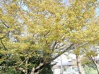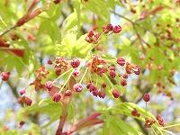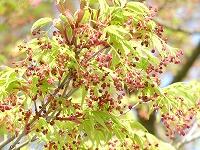 <学校の生き物たち紹介> 校庭西側の雑木園では、イロハモミジが小さな花をたくさん咲かせています。