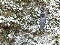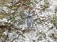 <学校の生き物たち紹介> 体育館北側の観察園のソメイヨシノの幹で、脱皮した後のヨコヅナサシガメに出会いました。