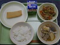 <今日の給食> ご飯・牛乳・鯖のスタミナ焼き・切り干し大根の煮物・根菜のごま汁