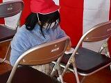 その後、給食配膳時の手順や注意点などを、模擬演習を通して確認しました。