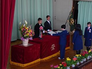 修了証授与 ~ 各クラス代表児童が立派な態度でいただきました ~