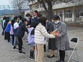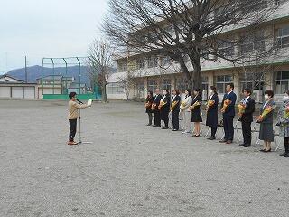 結びになりますが、ご臨席賜りました来賓の皆様、卒業式に際し心温まるメッセージをいただきました皆様、そしてこれまで卒業生にたくさんの愛情をいただきました地域の皆様、関係者の皆様、大変ありがとうございました。