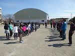 午前中には、雲の切れ間から春の青空が顔をのぞかせ始め、気温が上昇してきましたが、風がさらに強くなり、音を立てて校庭を吹き抜けていました。