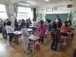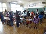 1年生の教室では、お別れ式に歌う歌の振り付けの練習に一生懸命取り組んでいました。