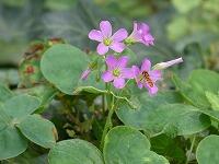 <学校の生き物たち紹介> 玄関前の花壇の片隅に、ひっそりと咲くムラサキカタバミを見つけました。