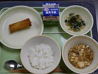 <今日の給食> ご飯・牛乳・四川風麻婆豆腐・春巻き・中華和え
