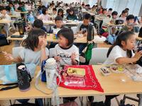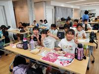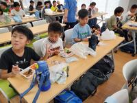 体を動かした後で、みんなお腹をすかしたようでした。おうちの方が用意してくださったお弁当をおいしそうに食べています。エネルギーをチャージして、午後の屋外でのネイチャービンゴにそなえましょう。