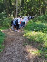 午後の活動であるネイチャービンゴを行うため、みかも山の中に入っています。地図をたよりに探検する中で、たくさんの自然にふれあうことができそうです。みんなで声をかけ会い、助け合いながら楽しい活動にしましょう。
