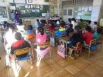学校では、3・4校時に、体育館において、夏休みに行った子ラボ・チャレンジの講師の方々をご招待して、人権集会とふれあいコンサートを行いました。