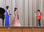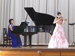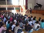 その後、校長先生から、本校の卒業生でもあるバイオリニストの前田みねりさんと、ピアノ奏者の高際悦子さんの紹介があり、ふれあいコンサートが始まりました。